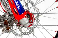 - Tylne koło Kite z anodowaną na czerwono aluminiową piastą i anodowaną na czarno obręczą Excel